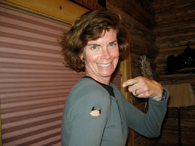 Waiting to go horseback riding in Yellowstone! Rylee Blake Scott and Piper Kenzie looks so tiny on that big horse! My horse was a real Mustang and his name is OK! (I didn't put any horse pics of Kim as she requested!) Rodeo Time!! A few action shots! Robert Natti Moncrief Family me Moncrief Family! The Harrs Natti and Kenzie Pappy and Olivia Kim's shirt caught on a branch while horseback riding. They work out. Goodbye Cabin. See you in 2010!